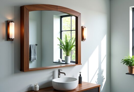 Arched Medicine Cabinet: Mirror Reflecting Bright Modern Bathroom, Elegant Design, Contemporary Interior, Stylish Reflection, Interior Scene, Sleek Cabinet, Minimalist Decor, Functional Storage, Clear