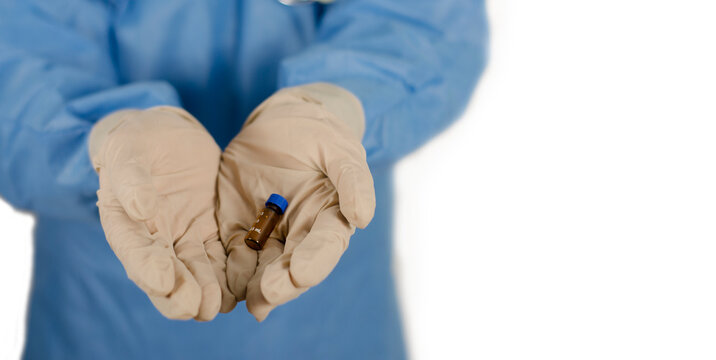 primer plano de manos de un medico doctor cirujano sosteniendo medicacion con fondo blanco