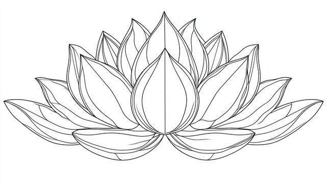 Buddha illustrated in black and white line drawing style, sitting on a lotus flower. Vintage set of vector illustrations with clean outline.