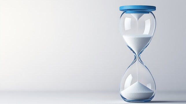 Tranquil Serenity Minimalist Closeup of Blue Hourglass on Neutral Background, Time Passing Concept (187 characters)