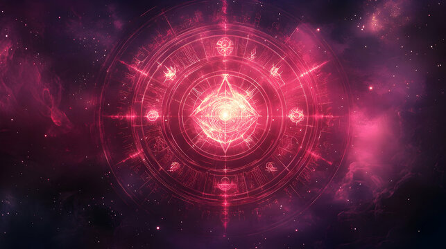 A mystical, glowing symbol surrounded by cosmic elements, suggesting themes of knowledge and power.