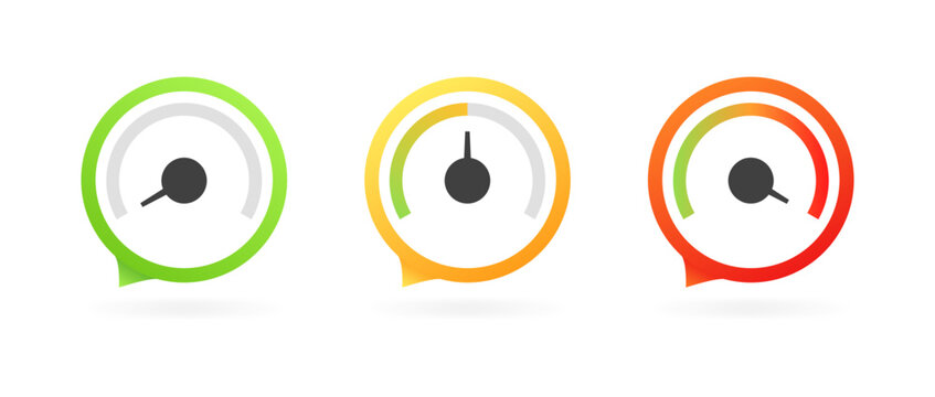 Scale meter with low, high and medium bar. Level risk graph or control quality template.