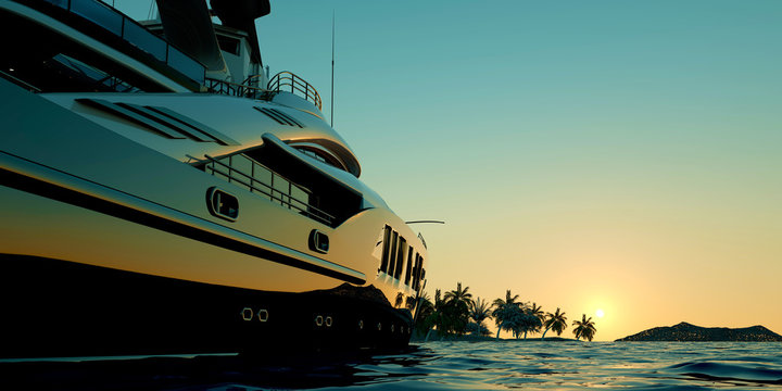 Extremely detailed and realistic high resolution 3d illustration of a luxury Mega Yacht.