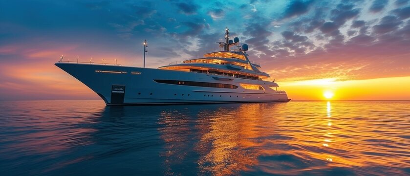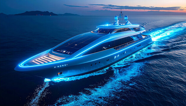 Futuristic megayacht design concept.  Luxury vessel on tranquil ocean. Architectural marvel.
