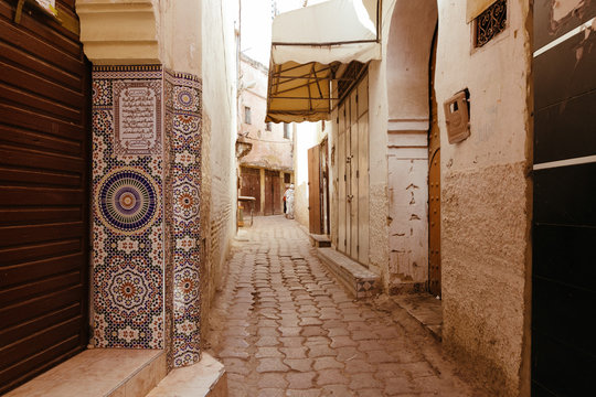 Old walls with gate Bab Mansour in medina of Meknes. Morocco, North Africaa