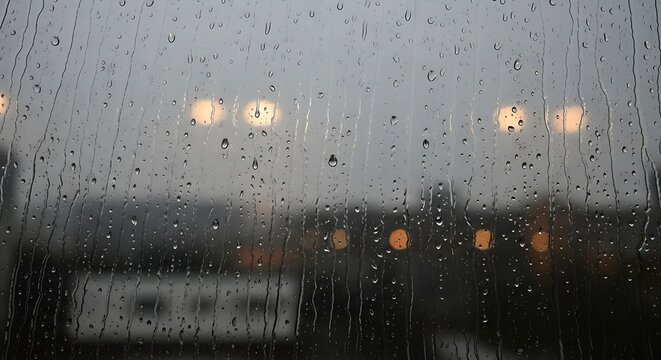 City lights through raindrops creating a melancholic blurred atmosphere