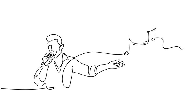 Single Line Art of a Man Singing with Abstract Music Notes