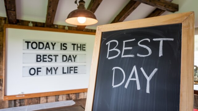beautiful calligraphic text "best day ever today" written in black ink on a white graphic background creating an elegant and striking visual impact