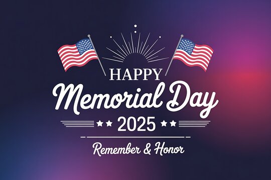 Happy memorial day 2025 design with american flags and patriotic remembrance theme.
