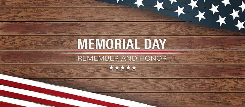 memorial day wooden background,united states flag, with remember and honor posters, modern design vector illustration