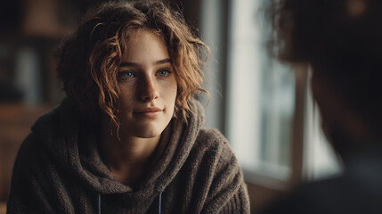 Adolescent Therapy Session - A teenager in a counseling session, discussing issues like school stress, peer pressure, or mental health with a compassionate therapist