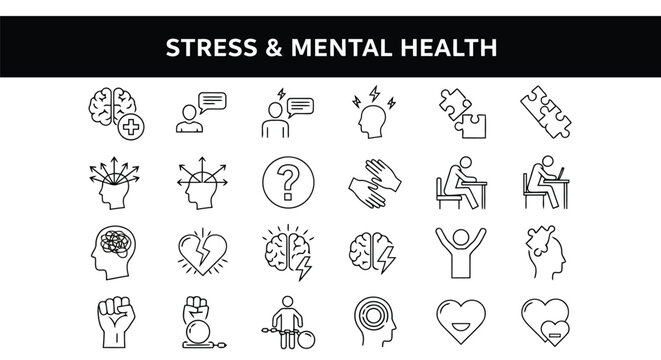 Collection of icons representing stress and mental health concepts