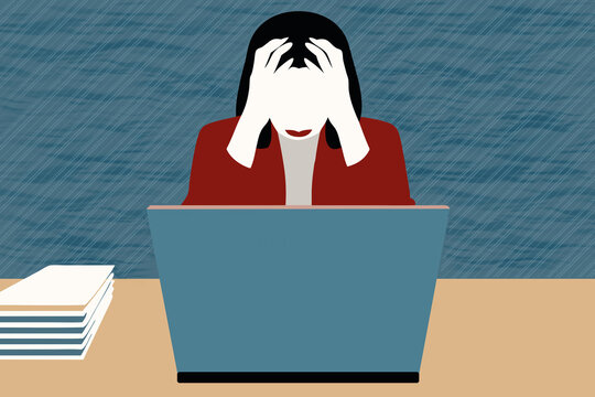 A person with their head in their hand, struggling with intense mental strain