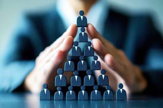 A digital organizational chart with glowing connections highlighting key employees being promoted, symbolizing leadership development and team efficiency.