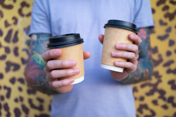 Man with coffee cups