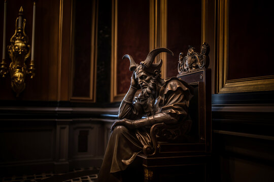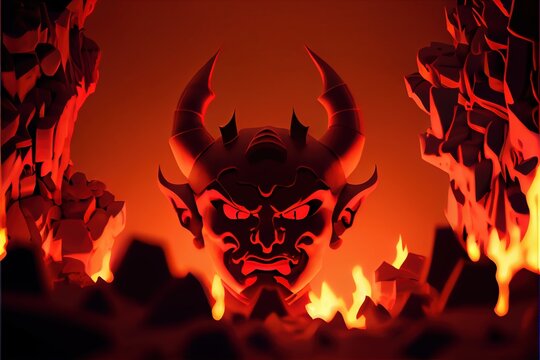 Satan in Hell - The devil is a red demon living in the hellish underworld of Catholic religions. This character is made by generative AI to represent beelzebub, the prince of darkness himself