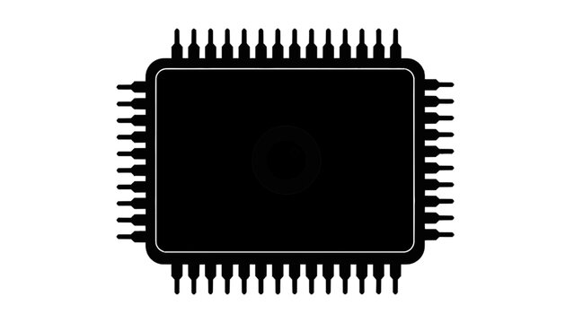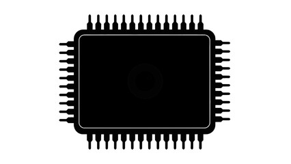Vector illustration of closeup of a black computer microchip with a white eye symbol in the center on a transparent background