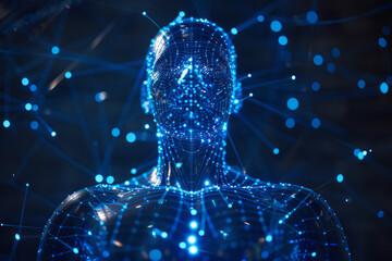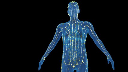 Futuristic human body with glowing meridian points