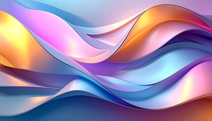 Abstract waves of iridescent light curve and flow in a mesmerizing dance of pastel colors and metallic sheen