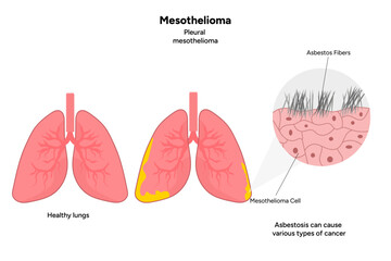 Mesothelioma vector illustration. Labeled lung cancer educational scheme.