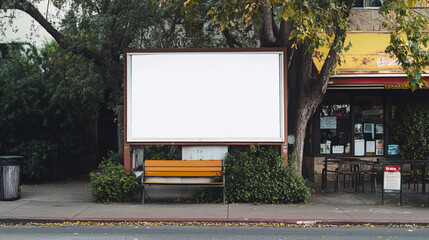 blank ad board stands in a busy shopping center or business mall, ready for customization or promotional content, surrounded by bustling shoppers and modern retail elements