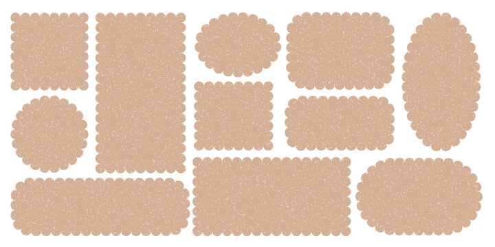 Set or collection brown natural craft kraft paper hang tags, price tags or gift tags with striped bakers twine, isolated design elements, different positions, PNG File