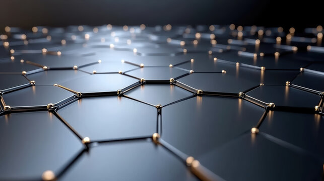 Futuristic hexagonal network design with metallic elements and sleek surface