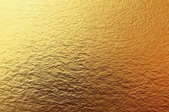 Gold foil texture creates a shimmering golden background ideal for artistic designs, presentations, or crafts featuring copper accents and metallic elements