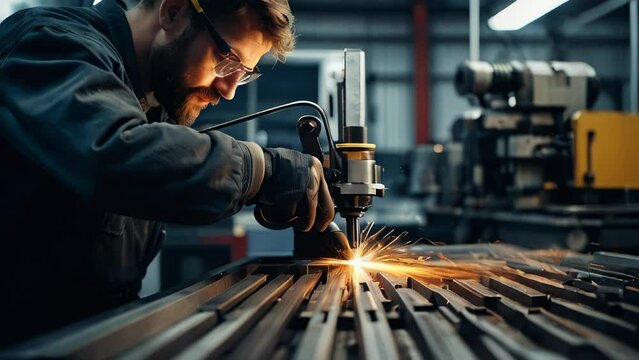 A close-up of a metallurgist in protective gear conducting metal alloy analysis in a metallurgical laboratory, surrounded by crucibles and industrial furnaces, Metallurgical lab scene