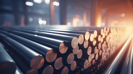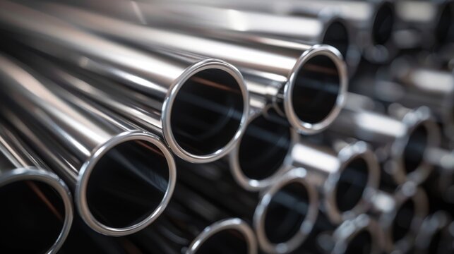 A stack of stainless steel pipes in the background, a backdrop concept for the metallurgical industry