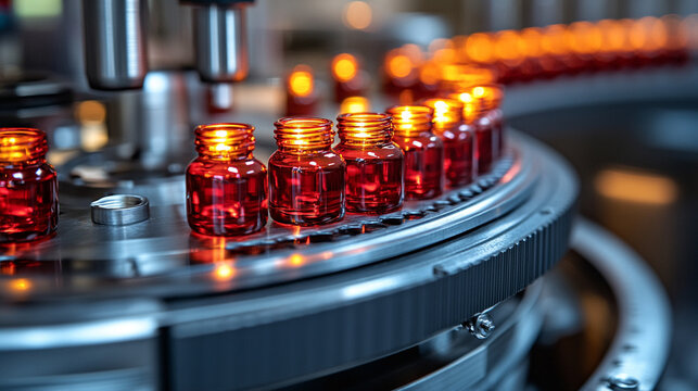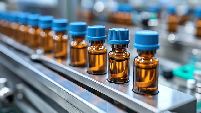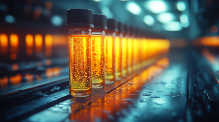 pharmaceutical vials filled with liquid, highlighting precision and meticulous organization in a clinical setting, symbolizing healthcare and scientific accuracy