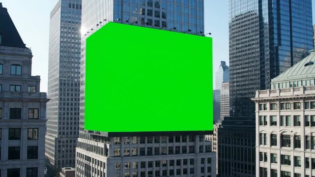 Rooftop Billboard Green Screen Mockup City Skyscraper Advertising Banner