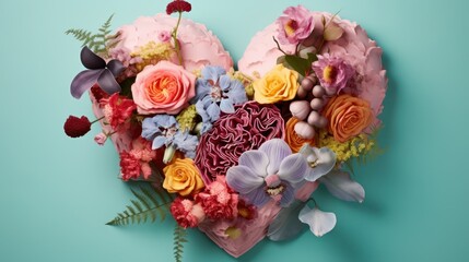 a heart shaped cake with flowers on it