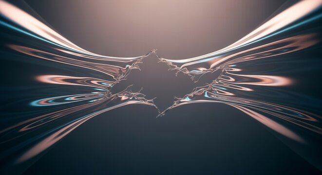 A symmetrical, abstract design with glowing lines and shapes, creating a sense of motion and energy.