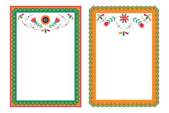 Set of festive vector frames with flowers and decorative elements. Mexican fiesta, Cinco de Mayo - festive frame, social media story. Design element for banner, poster.