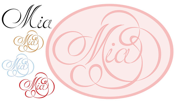 Name Mia, made in the vector for use in various purposes, from embroidery to printing business cards.