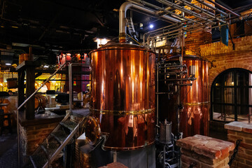 Microbrewery Craft Beer - A microbrewery with stainless steel tanks  - AI Generated