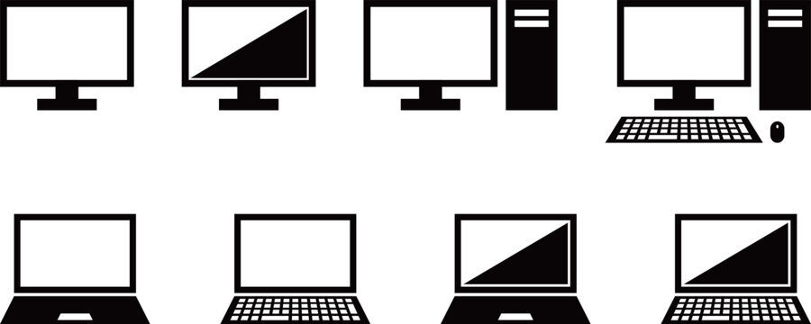 Laptop monitor mockup. Pc computer template with blank screen. Silver desktop isolated on white or transparent background.