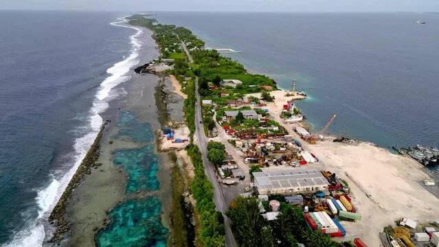 MARSHALL ISLANDS - 3.18.2024 - Excellent aerial footage moving along an industrial port in the Marshall Islands.
