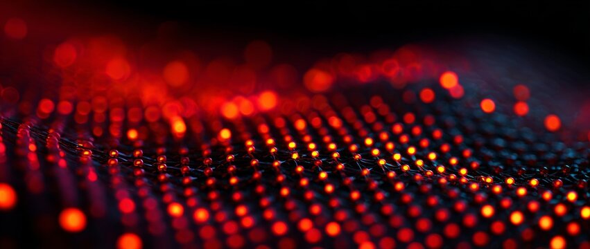 Graphene's abstract structure is illuminated by red and blue lighting, highlighting its role in nanotechnology and advanced materials for various scientific and technological applications