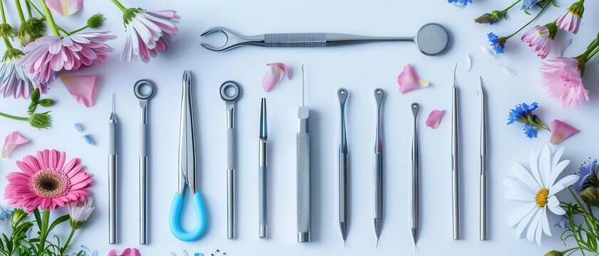 Petal microsurgery tools arranged neatly on a white surface