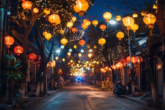 Enchanting mid autumn festival in china lantern lit on city street at night
