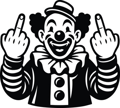 Rude Clown Vector – Cartoon Clown Showing Middle Finger for Dark Humor, Tattoos, and Streetwear Art