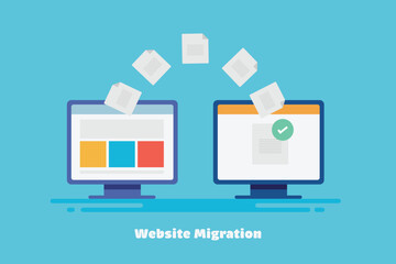 Website migration service. Chaing website structure, content and creating new user experience for better search ranking, vector illustration web banner.
