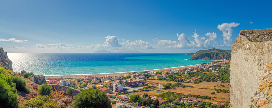 Panoramic view of a mediterranean beach in Milazzo, Sicily, Italy