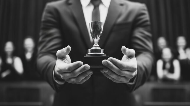 Shiny golden star trophy on black background, symbolizing achievement and excellence