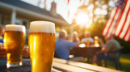 National lager day celebration with frothy beer glasses