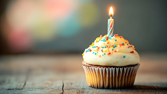 First birthday cake with colorful frosting and candles on pastel background for baby celebration, party decor, and milestone photoshoot