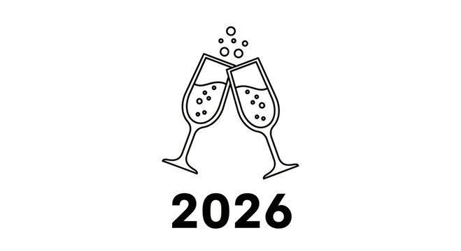 Celebrate 2026! Elegant Toasting Champagne Glasses Line Art for New Year's Eve, Milestone Events, and Festive Greetings, Perfect for Invitations