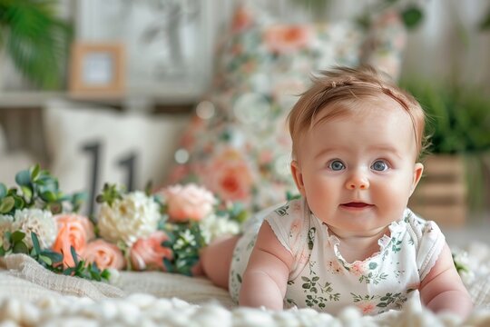 A beautiful 11-month baby milestone card adorned with watercolor flowers.